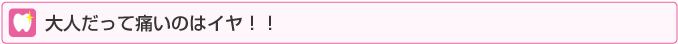 「大人だから少しぐらい我慢しなきゃ!!」皆さんのそうしたお気持ちは、スムーズな治療をするために私たちにとって、非常にありがたいことなのですが、でも、大人だからといって無理は禁物です!